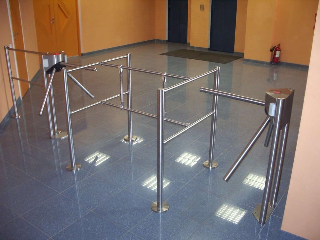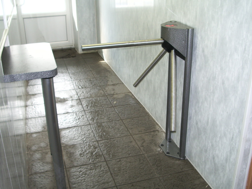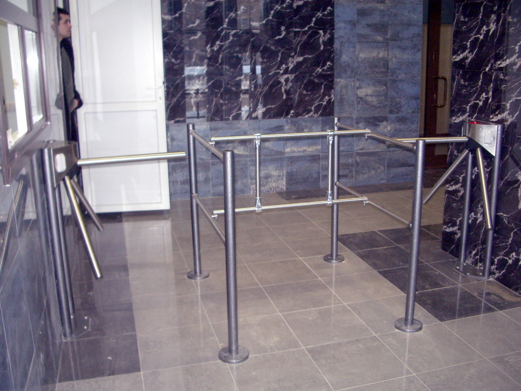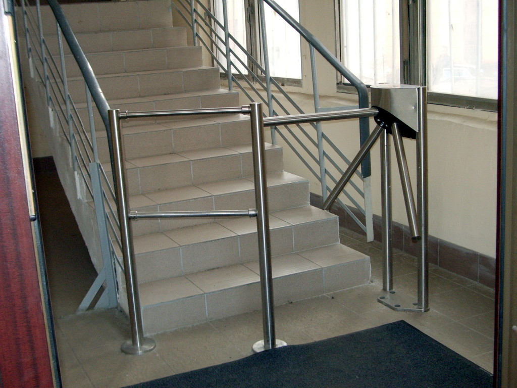 | Проходная предприятия. Трипод с поворотным ограждением фирмы ОМА. Окрашенная/нержавеющая сталь. |