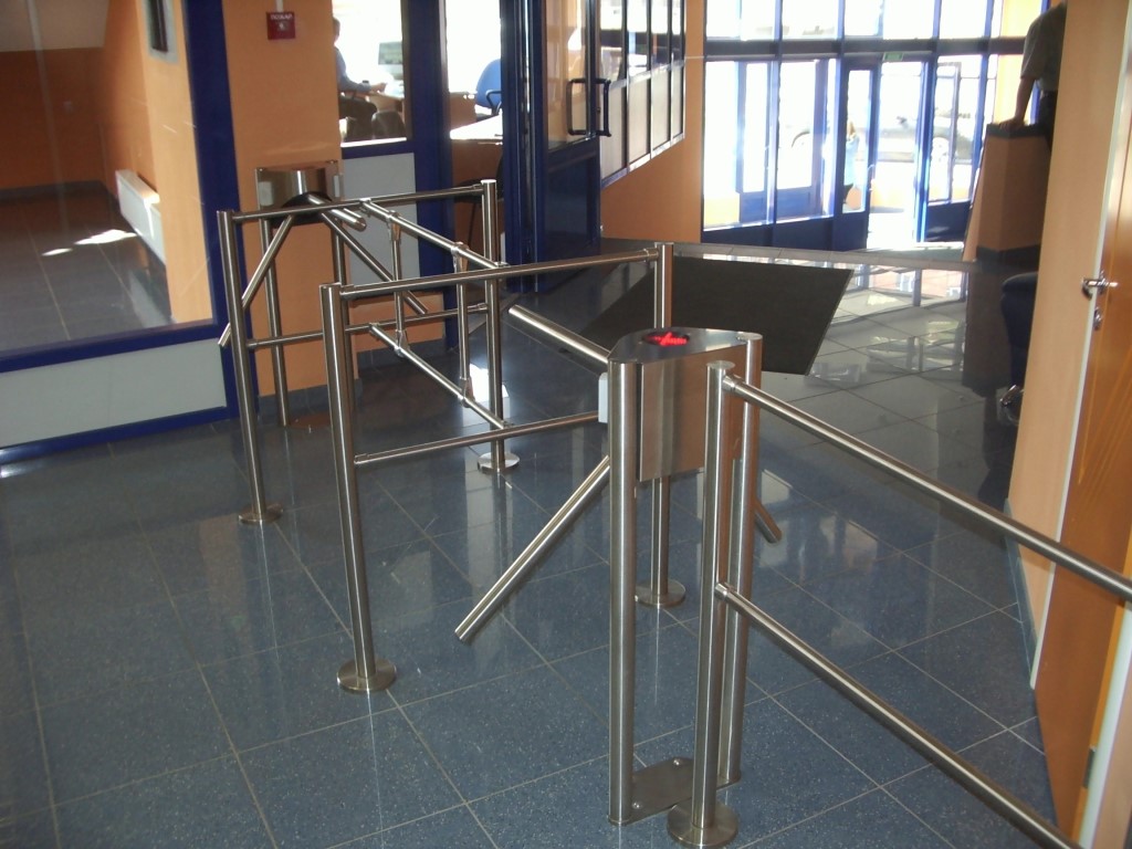 | Администрация Выборгского района. Два турникета и поворотное ограждение. Всё из нержавеющей стали. Фирма ОМА. Компьютерная СКД. |