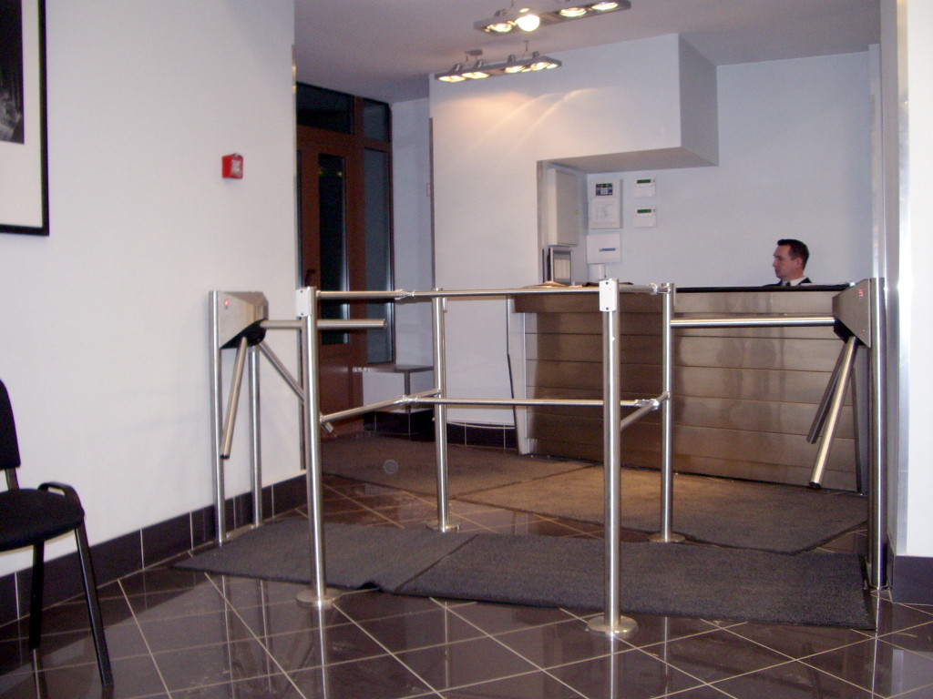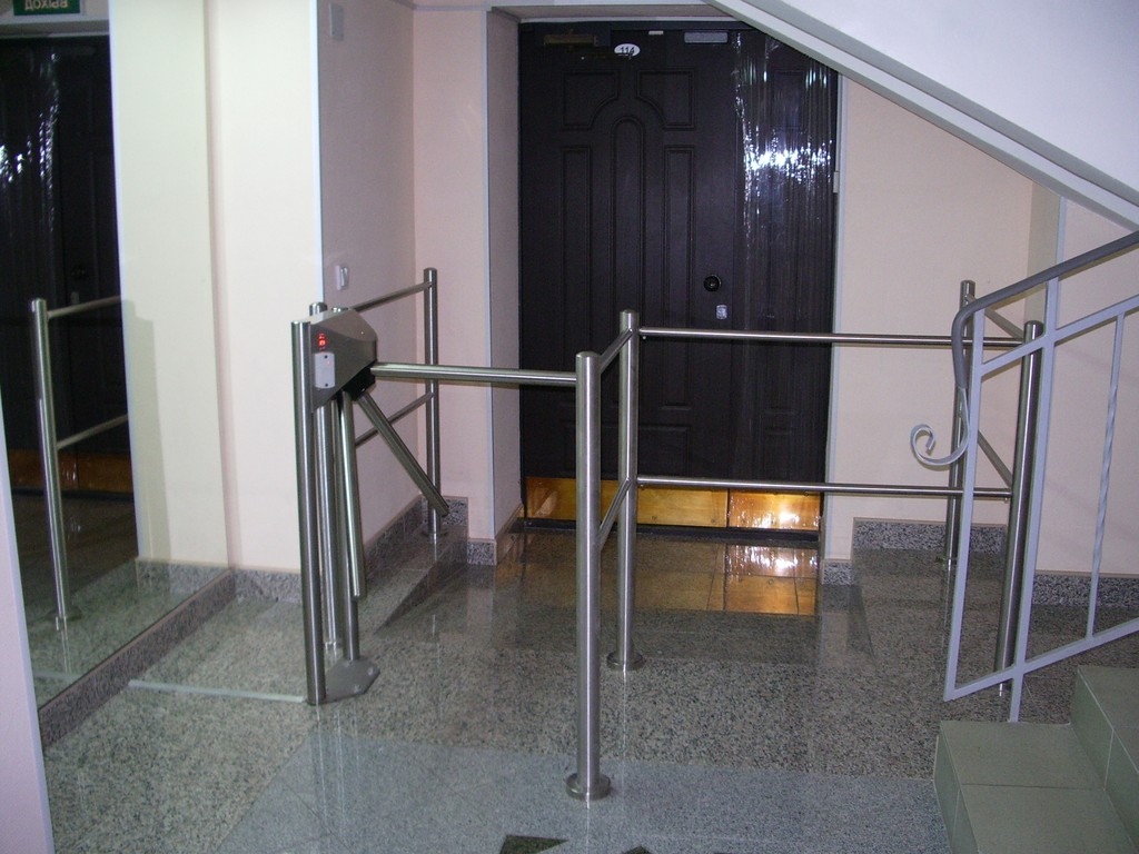 | Марата 82. Проходная бизнес-центра. Турникет-трипод фирмы ОМА, нержавеющая сталь. |