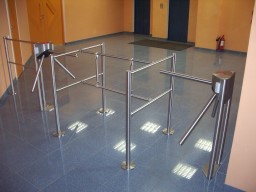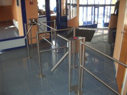 Проходная предприятия. Трипод с поворотным ограждением фирмы ОМА. Окрашенная/нержавеющая сталь.