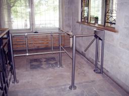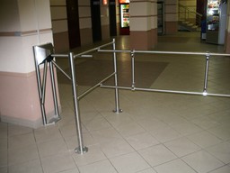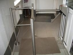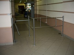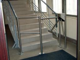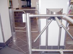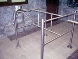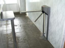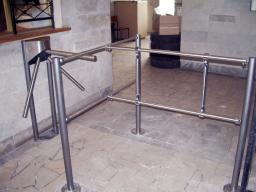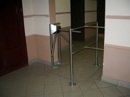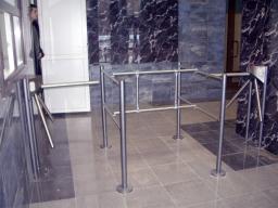 Зеленков переулок д. 2. Проходная. Турникет-трипод фирмы ОМА с ограждением. Нержавеющая сталь.