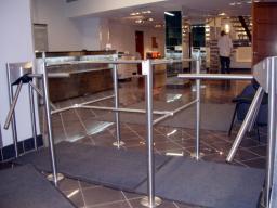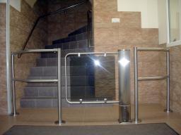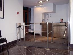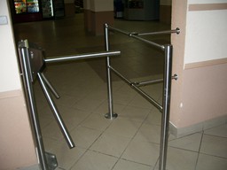 Марата 82. Проходная бизнес-центра. Турникет-трипод фирмы ОМА, нержавеющая сталь.